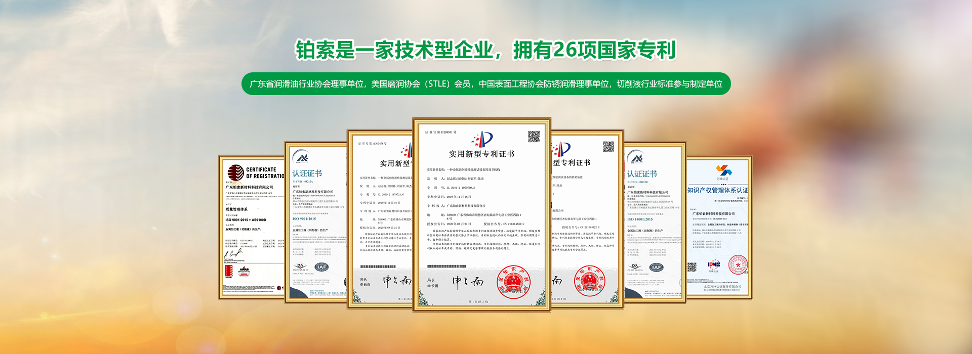 关于铂索 / ABOUT BOOST 广东铂索新材料科技有限公司经过近10年的发展,目前已是广东省“专精特新”企业,润滑油行业协会理事单位,美国磨润协会(STLE)会员,中国表面工程协会防锈润滑理事单位,切削液行业标准制定单位,目前拥有26项国家专利。公司于2018年3月成功挂牌深圳前海股权交易... › 企业简介 › 企业文化 › 企业风采 › 生产基地 › 荣誉证书 › 服务网络